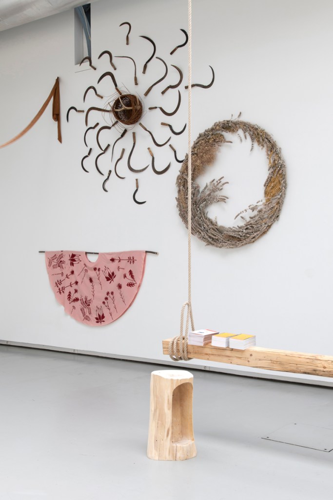 Sixième exposition de Joël Riff en tant que commissaire de La Verrière, « Esperluette » affirme la dynamique collaborative en jeu dans la production d’Hélène Bertin. Ses formes naissent de rencontres. L’artiste cultive un appétit d’apprentissage par l’expérience partagée, façonnant les choses à plusieurs. Chaque œuvre découle de conversations durant lesquelles faire et échanger fonctionnent de concert. Avec une grande attention portée aux origines des matériaux et des gestes, l’artiste conforte depuis une dizaine d‘années une vaste recherche sculpturale qui ne vient jamais seule, ni de nulle part. L’esperluette « & » est ce caractère typographique qui majore la conjonction de coordination « et » au point d’en fusionner les deux lettres. Elle aurait été une lettre à part entière de l’alphabet français et relève aujourd’hui davantage d’une fantaisie visuelle et lexicale attestant par sa ligature le lien fondamental entre deux personnes. Le glyphe résume ainsi la méthode de travail d’Hélène Bertin aussi bien que la relation à construire entre une artiste et un commissaire. De manière générale, il récapitule les enjeux du solo augmenté dont le format rythme le programme de La Verrière depuis bientôt deux ans. L’accrochage à Bruxelles rendra public le fruit d’un an de résidence à la Villa Médicis, à Rome, où Hélène Bertin (née en 1989) est actuellement pensionnaire. La Fondation d’entreprise Hermès active ainsi une circulation européenne de l’Italie à la Belgique dans le cadre d’une coopération institutionnelle inédite. Pour l’occasion, l’artiste éveille des collaborations avec la charpentière marine Anne Blanès (née en 1981), la cultivatrice de fleurs Aline Cado (née en 1992), la compositrice Marion Cousin (née en 1983), la potière Caroline Nussbaumer (née en 1979) et la teinturière végétale Lola Verstrepen (née en 1993), sans empêcher d’autres intuitions de surgir d’ici l’inauguration de l’exposition. Il s’agit pour Hélène Bertin d’une première monographie en Belgique, et à l’étranger tout simplement.