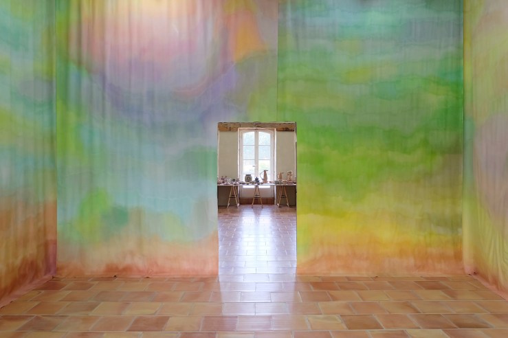 Si la température fige la forme en une rocaille définitive, ce sont les fards qui prennent le relais en matière de fluidité. La couleur glisse indépendamment de tout contour, sur une faïence excessivement chamottée. Libre, elle peut s’échapper, se laisser percer par la rugosité minérale ou se liquéfier pour en glacer les aspérités. Un jus se répand sur des concrétions effervescentes. Raffinement et grossièreté se confondent pour engendrer des ornements par fusion. Les épaisseurs assurent un rendu gratiné. Nous passons de l’informe à la croûte.